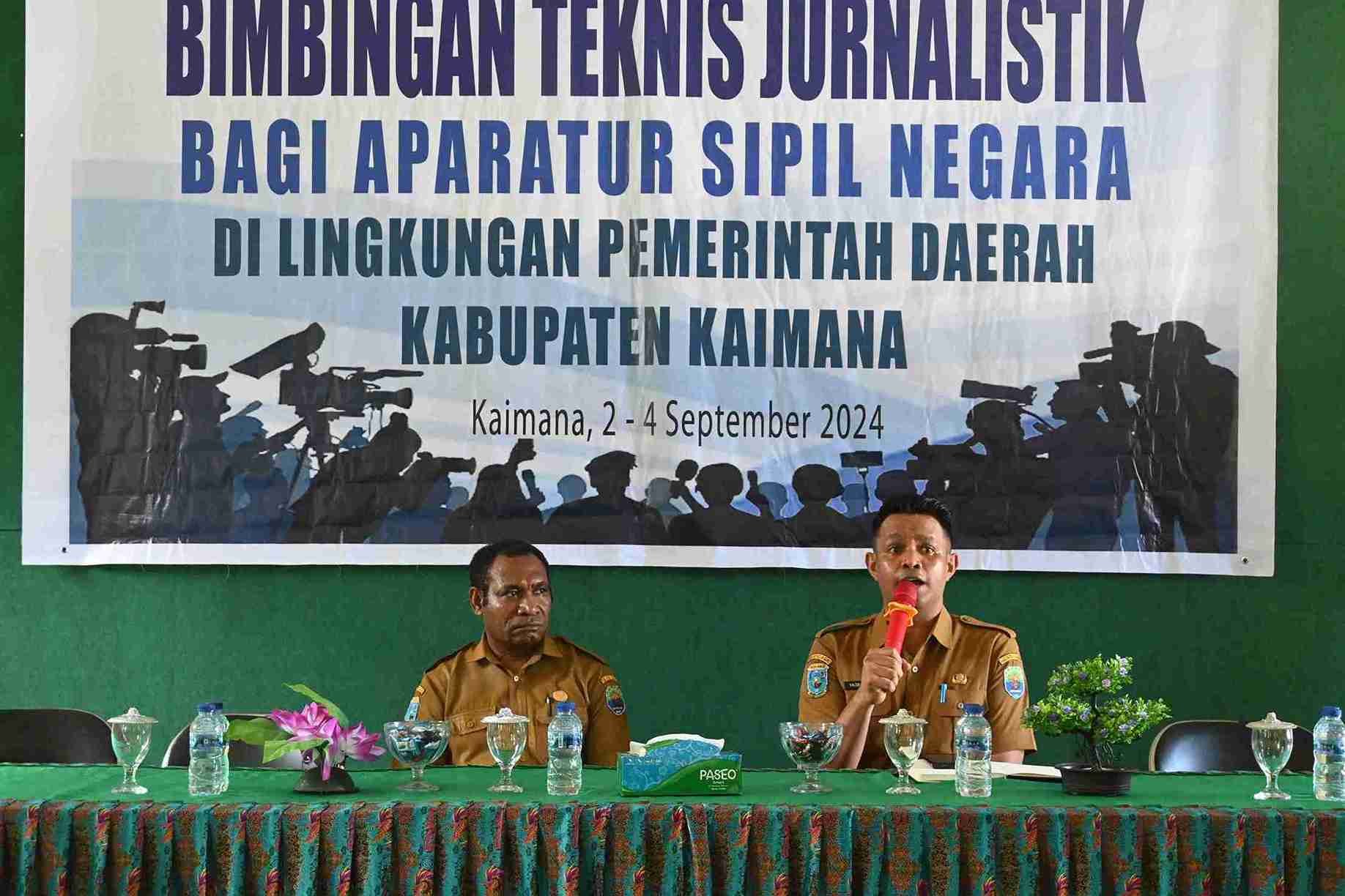 Kegiatan ini dibuka oleh Asisten 1 Bagian Pemerintahan Kabupaten Kaimana, Beliau yang menyampaikan pentingnya keterampilan jurnalistik bagi ASN dalam pengembangan informasi dan komunikasi di Kabupaten Kaimana. Menurutnya, kemampuan jurnalistik yang baik akan meningkatkan kualitas informasi publik yang disampaikan oleh ASN, terutama dalam pengembangan SDM.